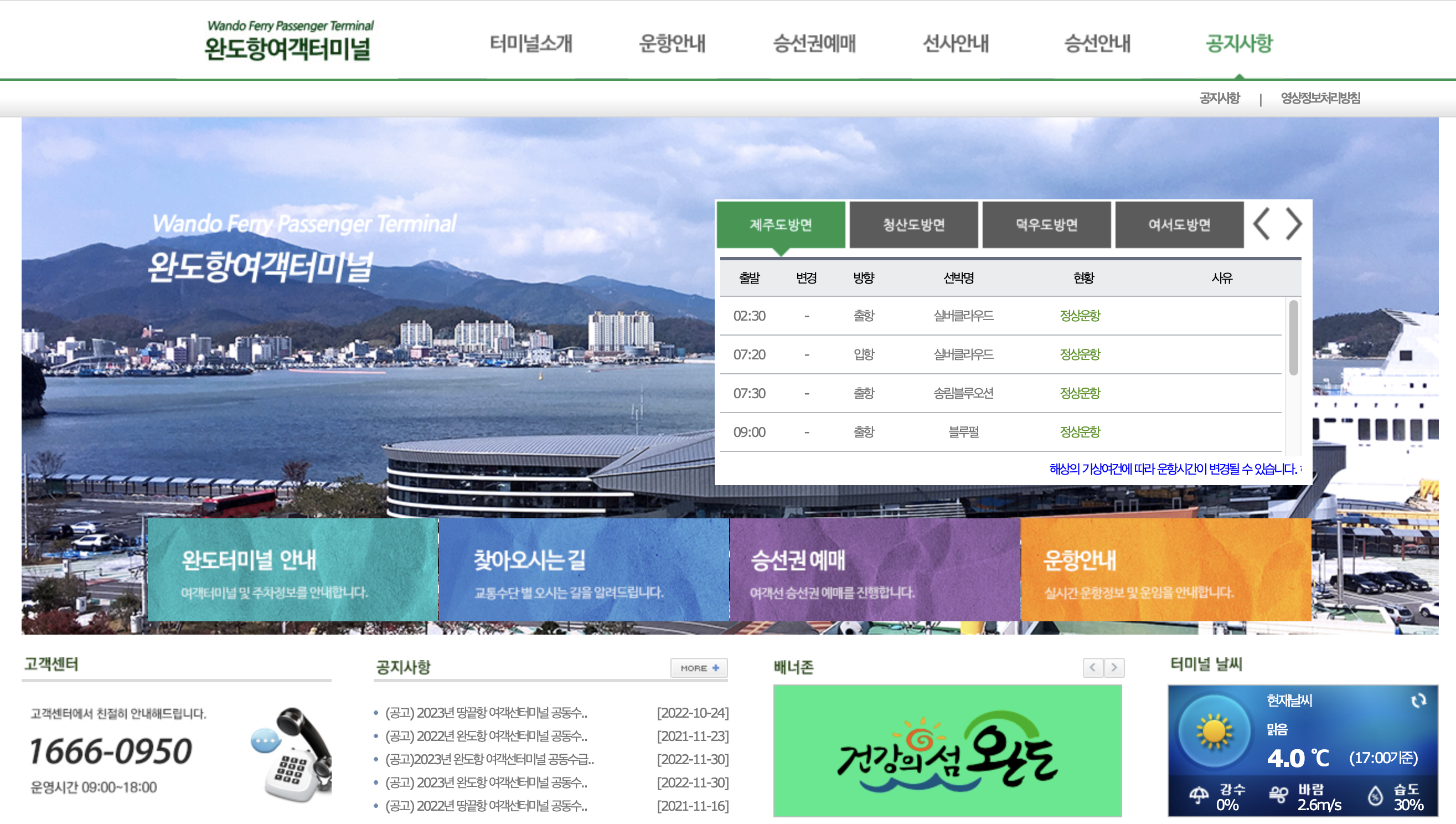 완도항여객터미널 홈페이지 : http://wando.ferry.or.kr/