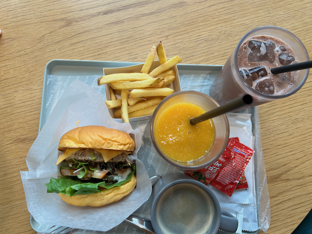 간단하게 음료(망고주스, 아메리카노)와 흑돼지 수제버거를 주문했습니다.