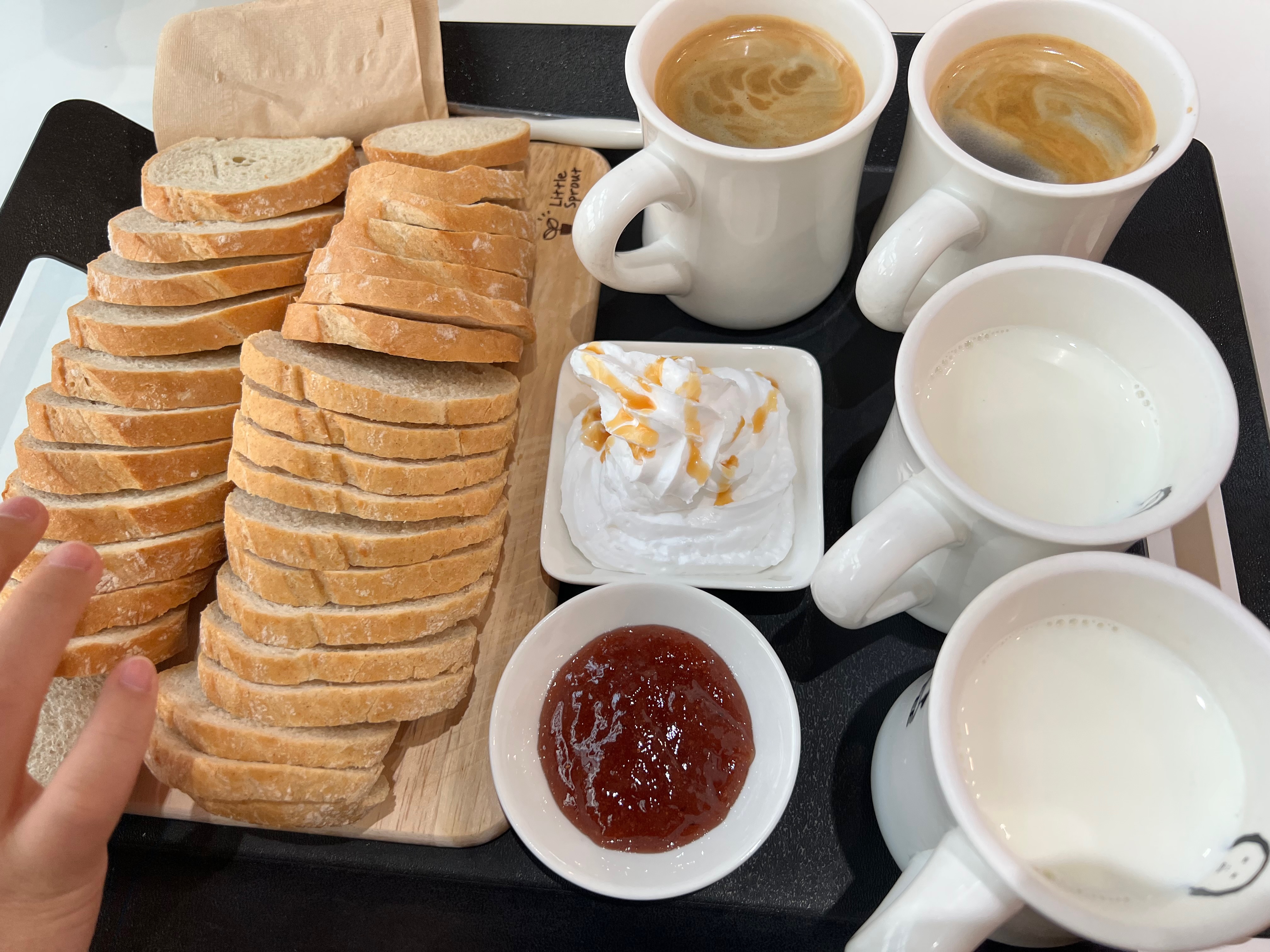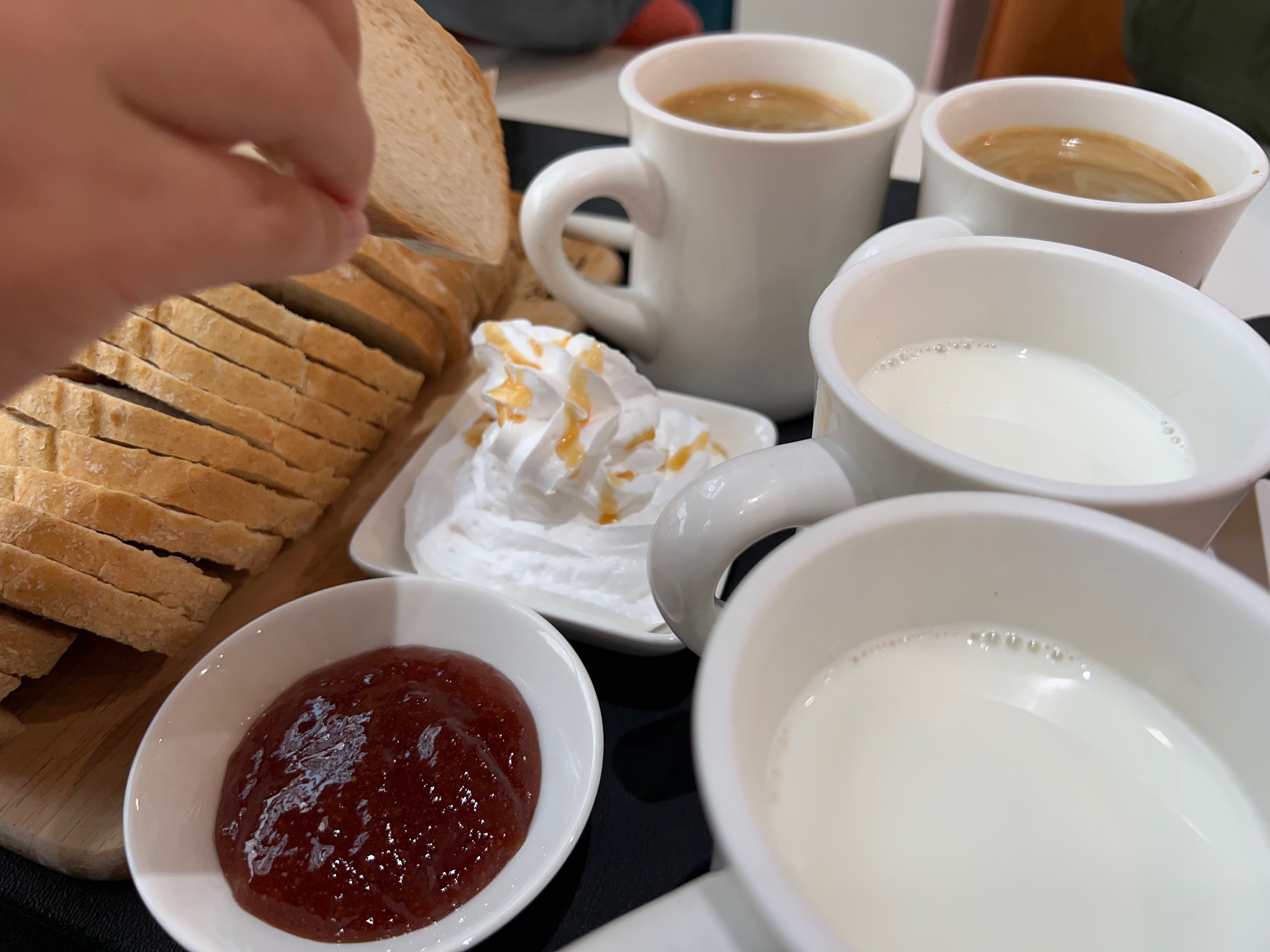 조금 있으면 주문한 음료와 같이 빵, 생크림, 딸기잼이 나옵니다.
