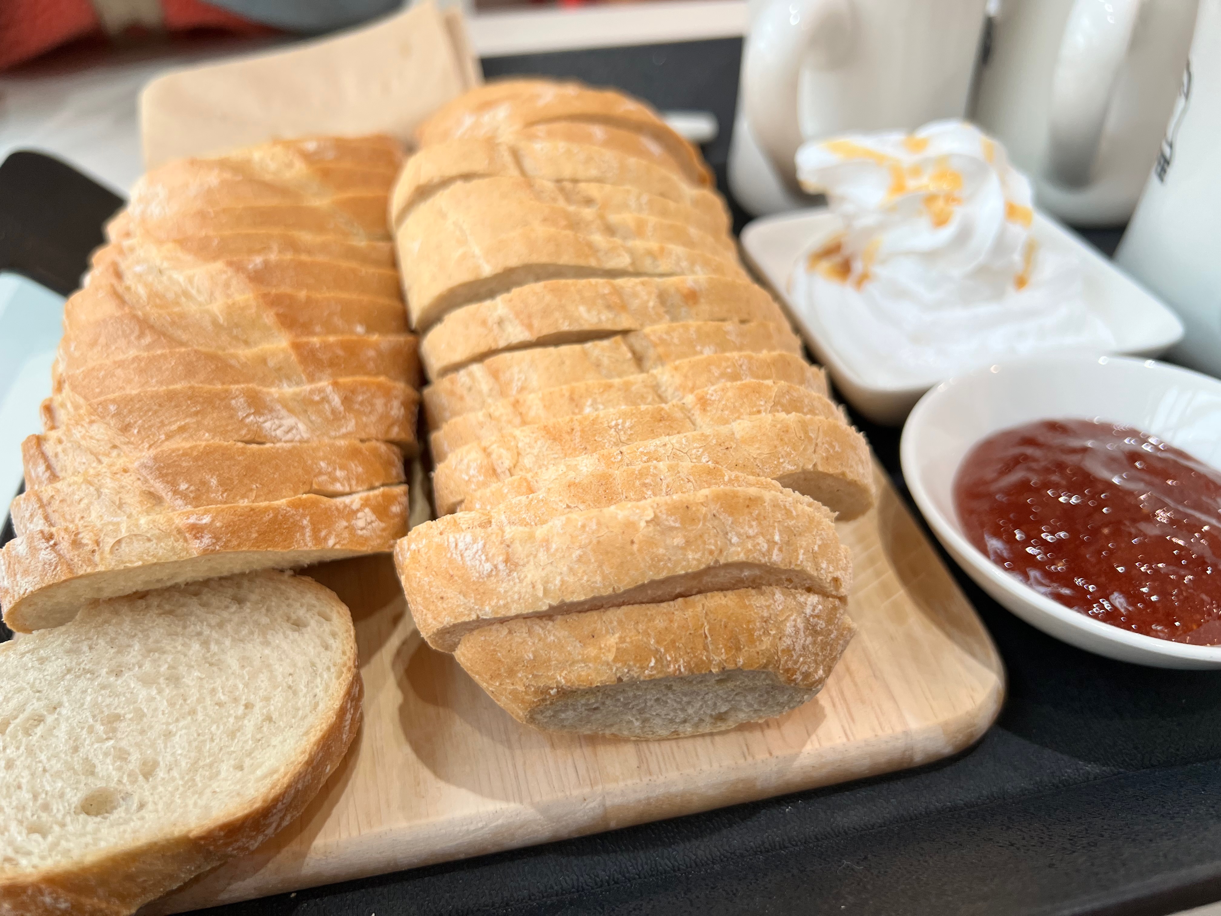조금 있으면 주문한 음료와 같이 빵, 생크림, 딸기잼이 나옵니다.
