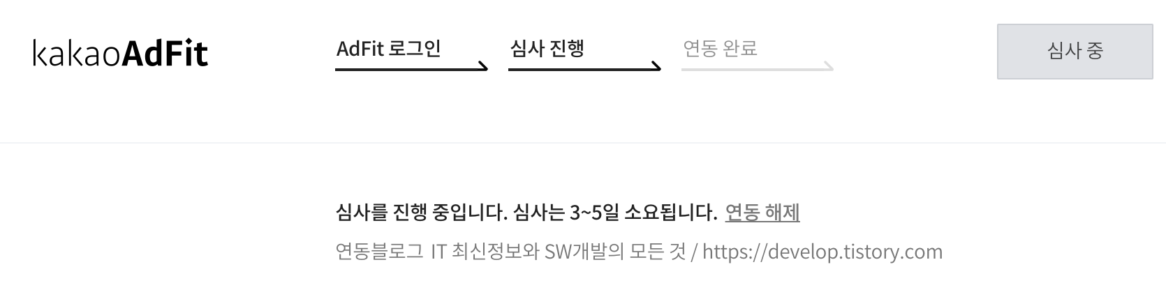 kakaoAdFit은 심사 진행 중이라고 나옵니다