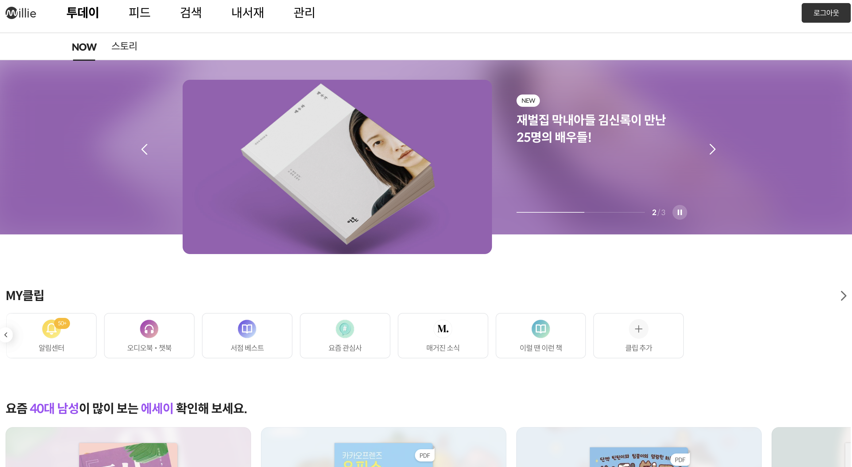 공식 홈페이지로 이동합니다. 'https://www.millie.co.kr'