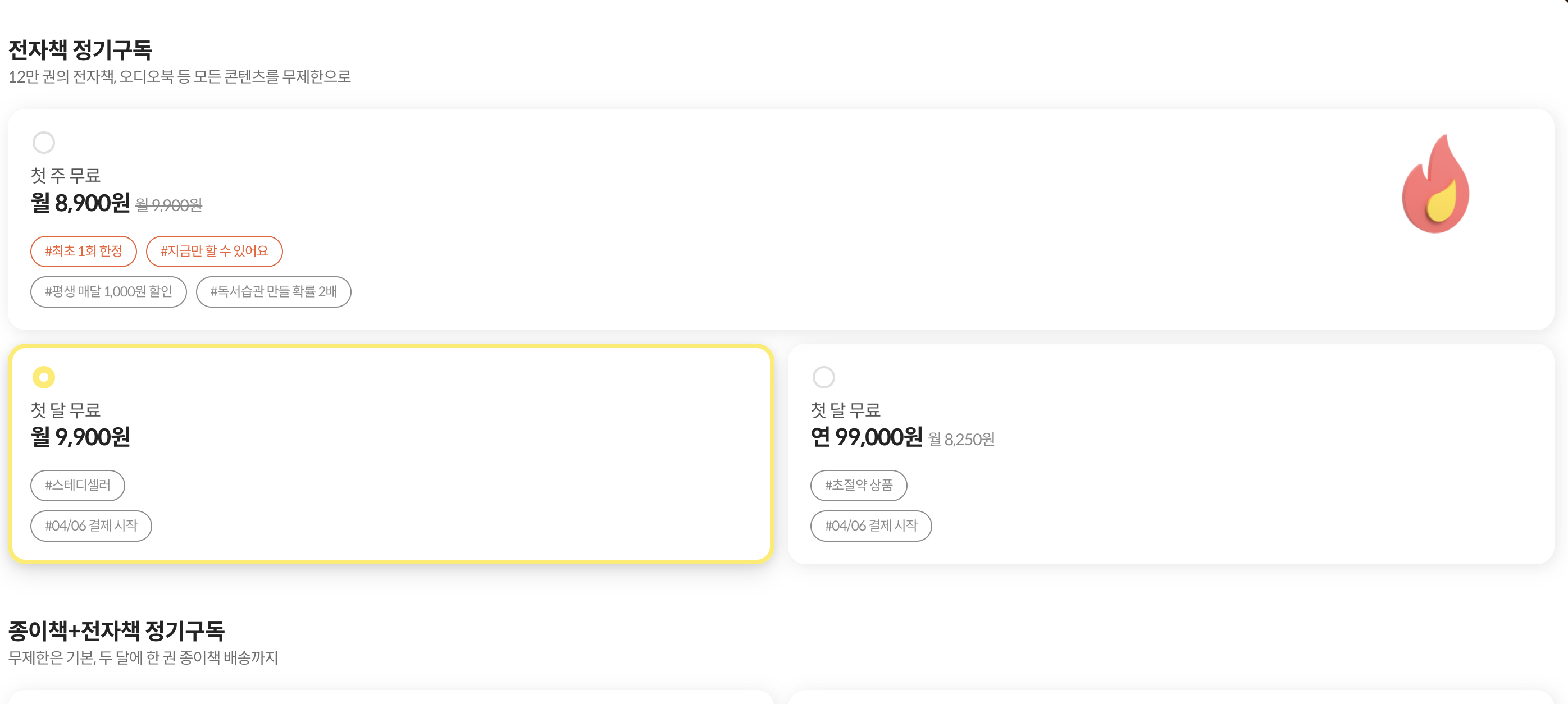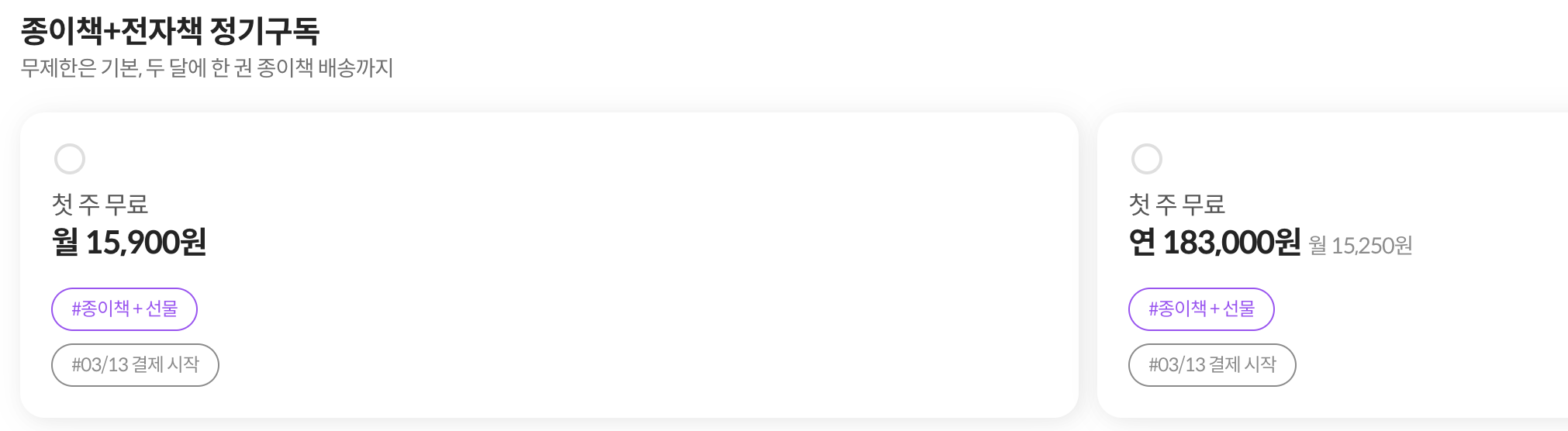4) 종이책+전자책 정기구독 = 첫 주 무료 월 15,900원