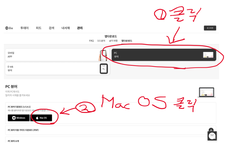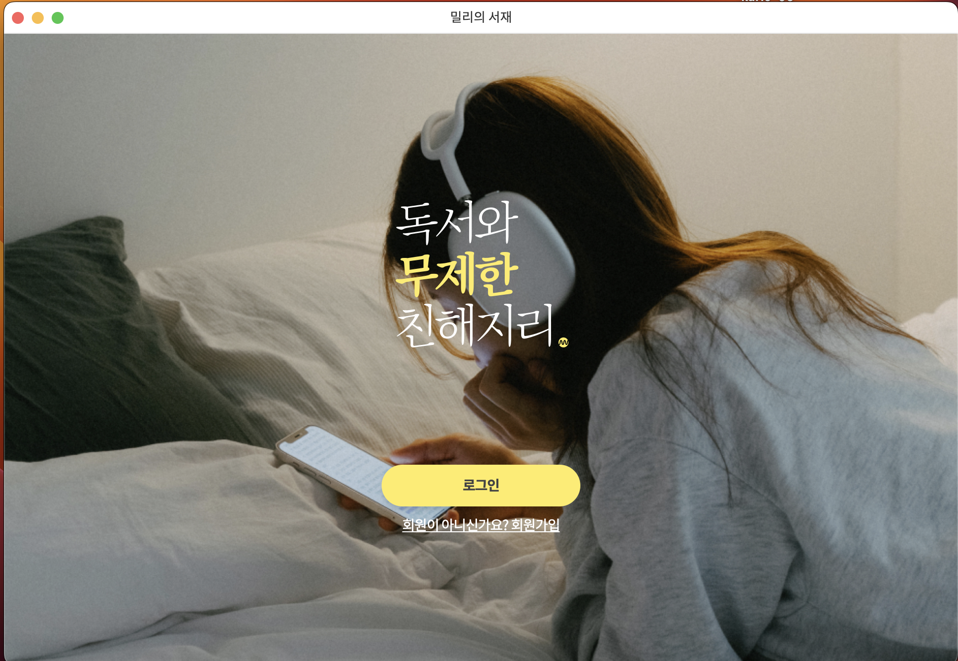 2) 맥북 뷰어 프로그램 '밀리의 서재' 를 클릭해서 실행합니다.