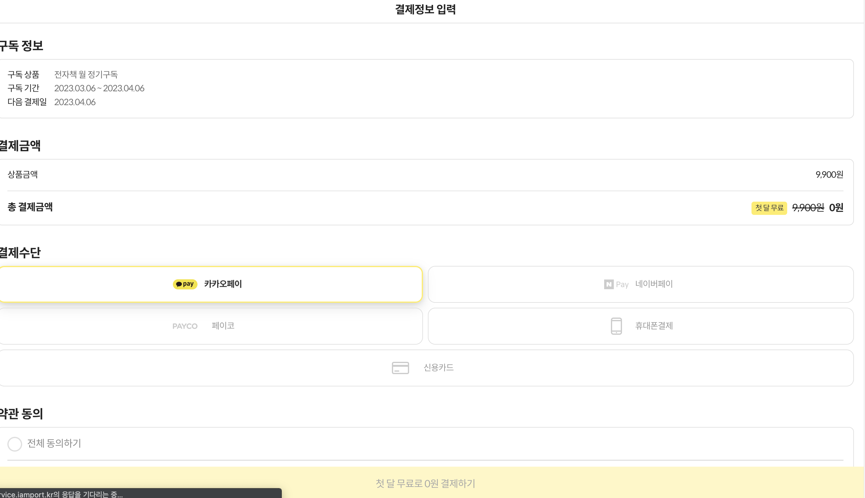 입력후에 하단에 '첫 달 무료로 0월 결재하기' 버튼을 클릭하고,