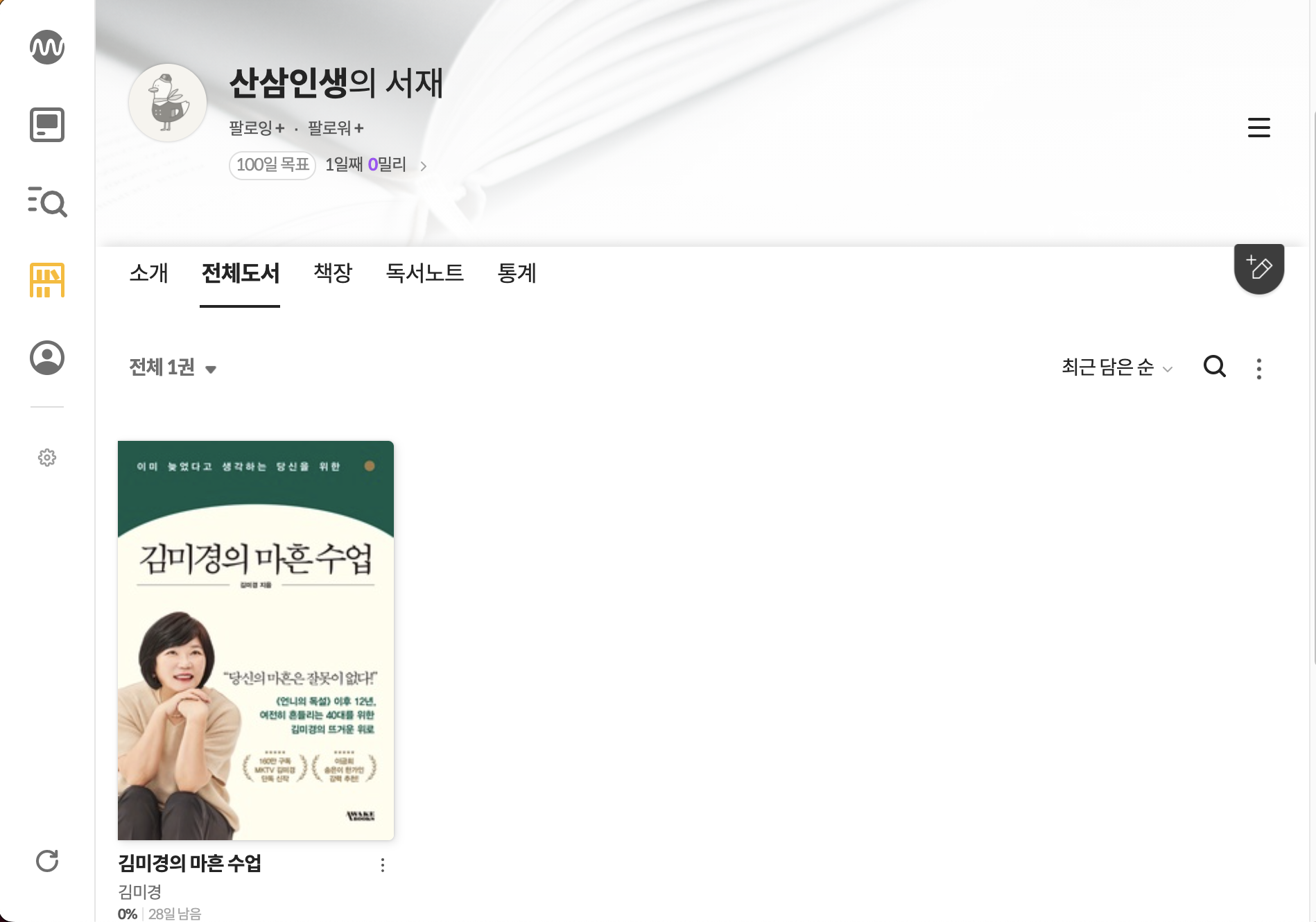 3) 로그인을 한다음에 왼쪽 서재 버튼을 클릭하면, 서재에 담아놓은 책을 확인할 수 있습니다.