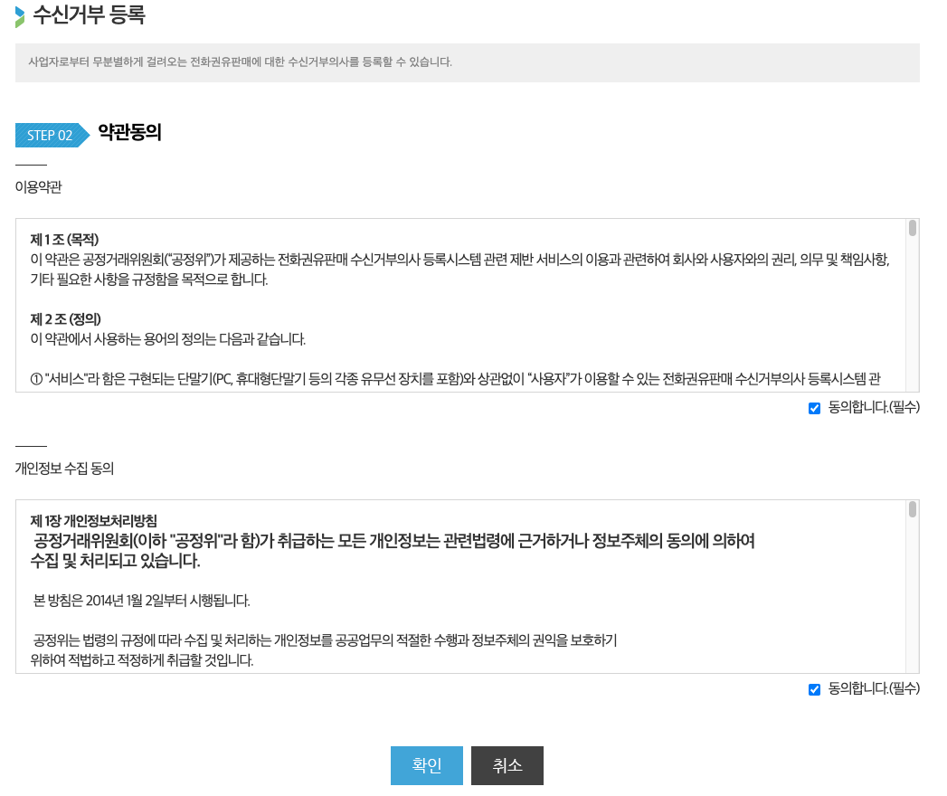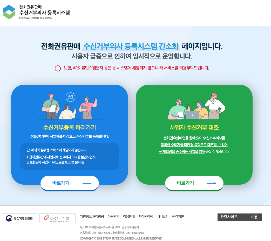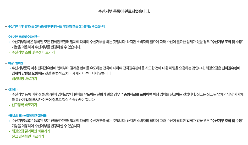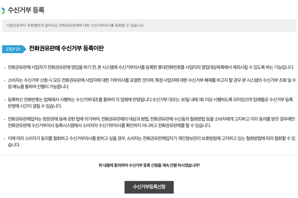 전화권유판매 수신거부의사 등록시스템 홈페이지 : https://www.donotcall.go.kr/teldeny/