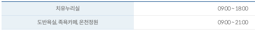 운영시간은 치유누리실은 09:00 ~ 18:00 까지 입니다.