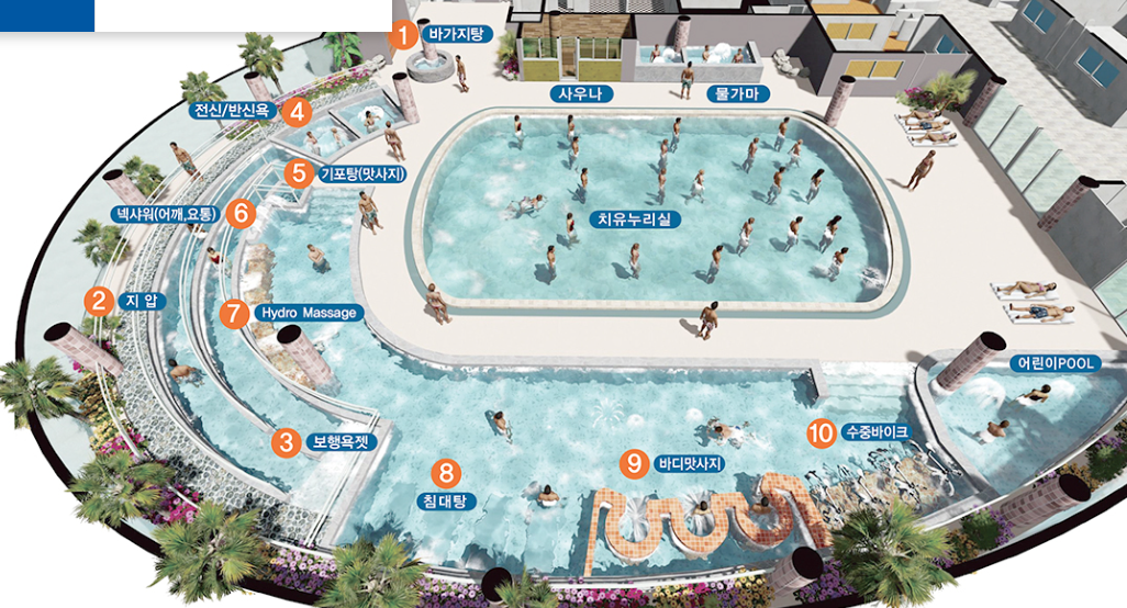 보통은 워터파크, 스파, 사우나, 수영장 등으로 얘기를 하지만