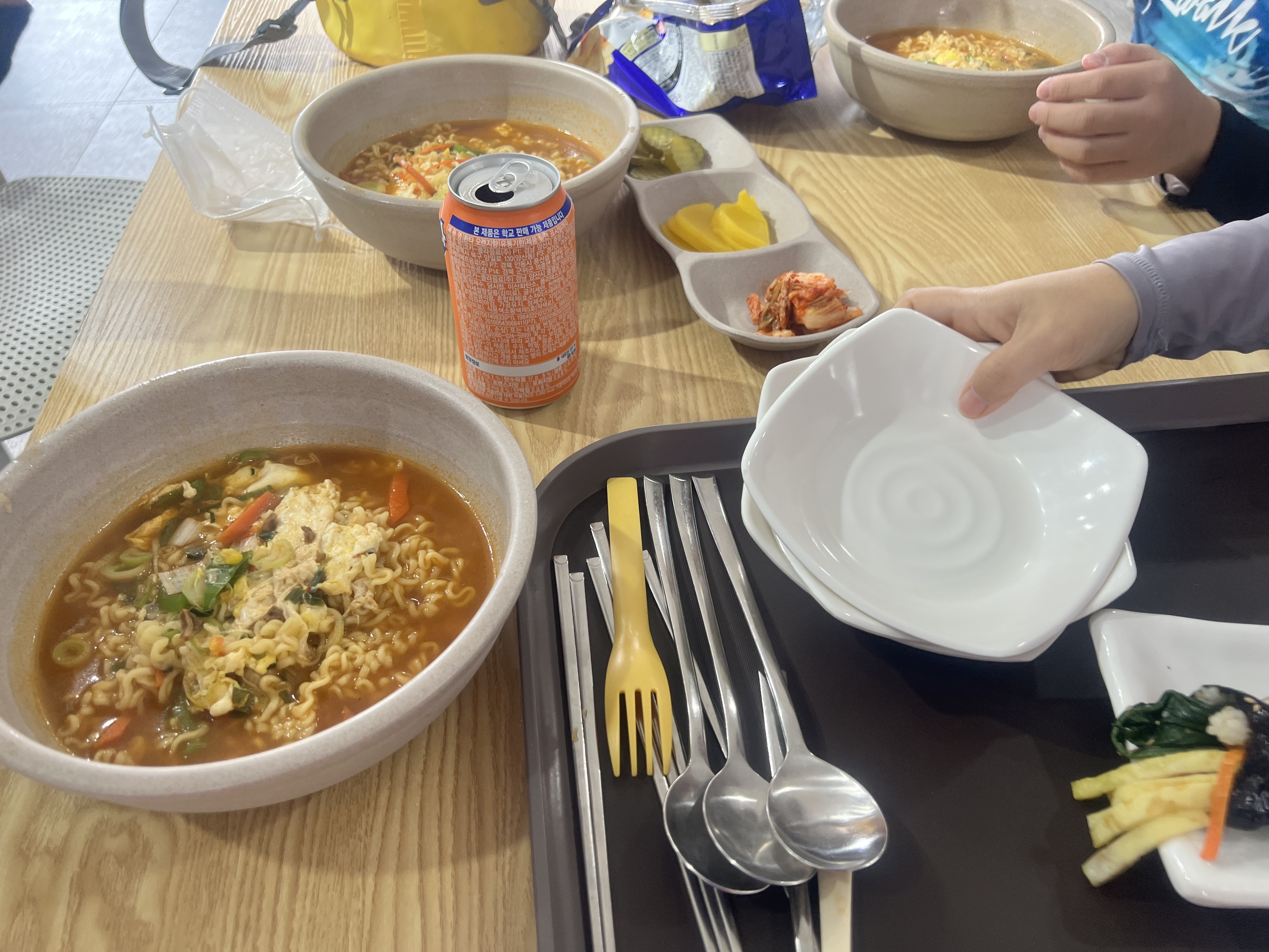 따뜻한 라면 국물을 마시니 몸이 따뜻해집니다.