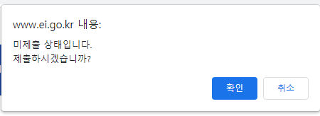 미제출 상태이며, 제출하시겠습니까? 라고 '확인' 버튼을 클릭합니다.