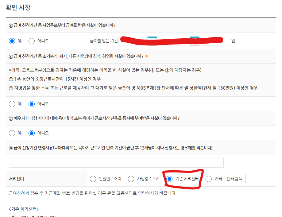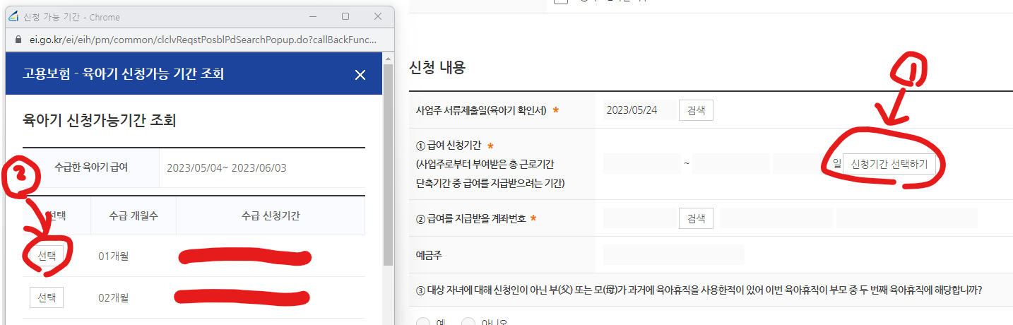 급여신청기간에서 '신청기간 선택하기' 클릭해서 원하는 수급 개월수를 선택합니다.