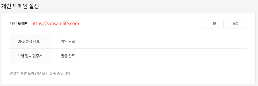 그래서 저는 sansamlife.com 으로 설정을 하였습니다.