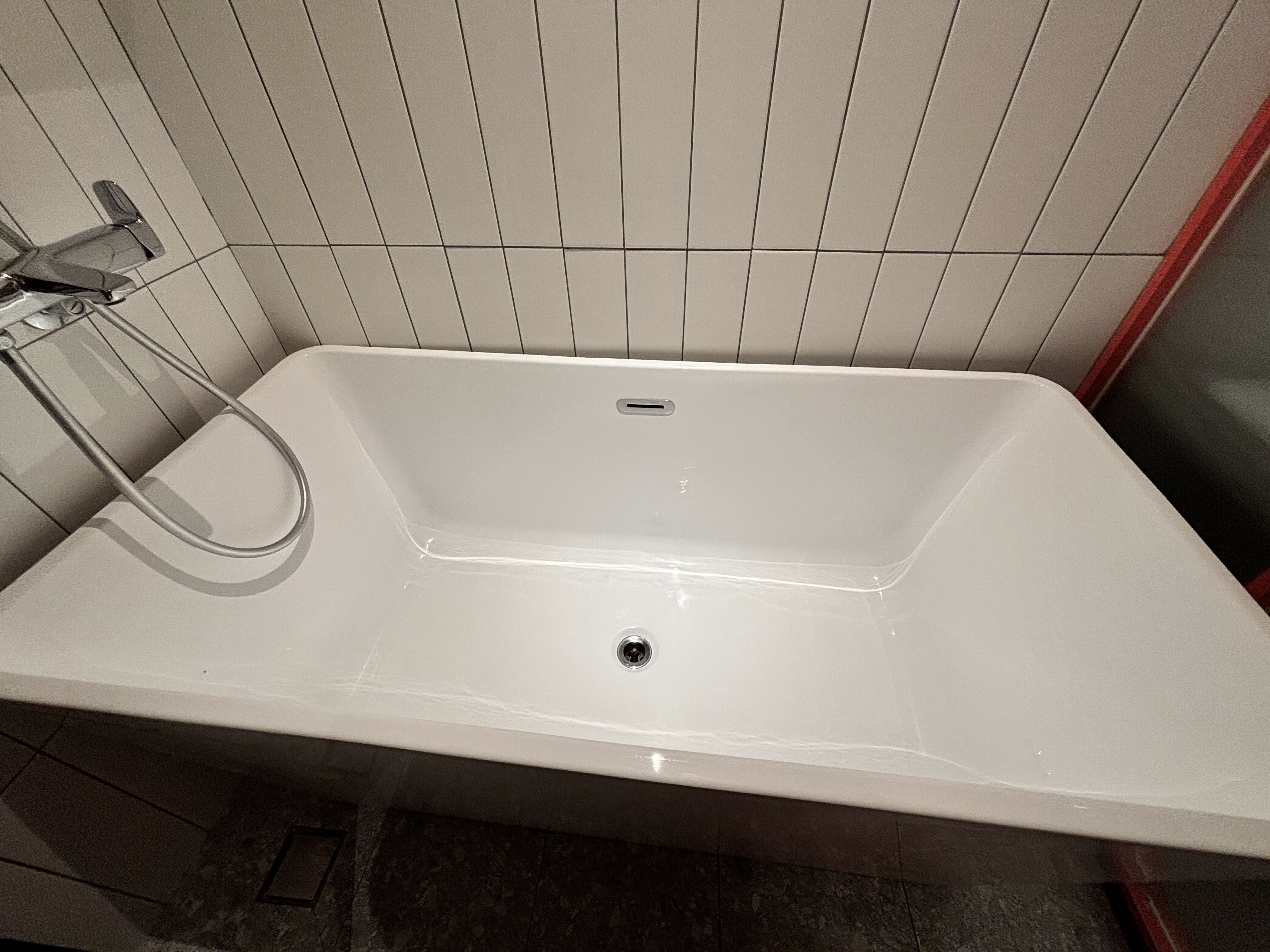 욕조에 물이 바닥으로 빠져나가는 구조로 되어 있어서