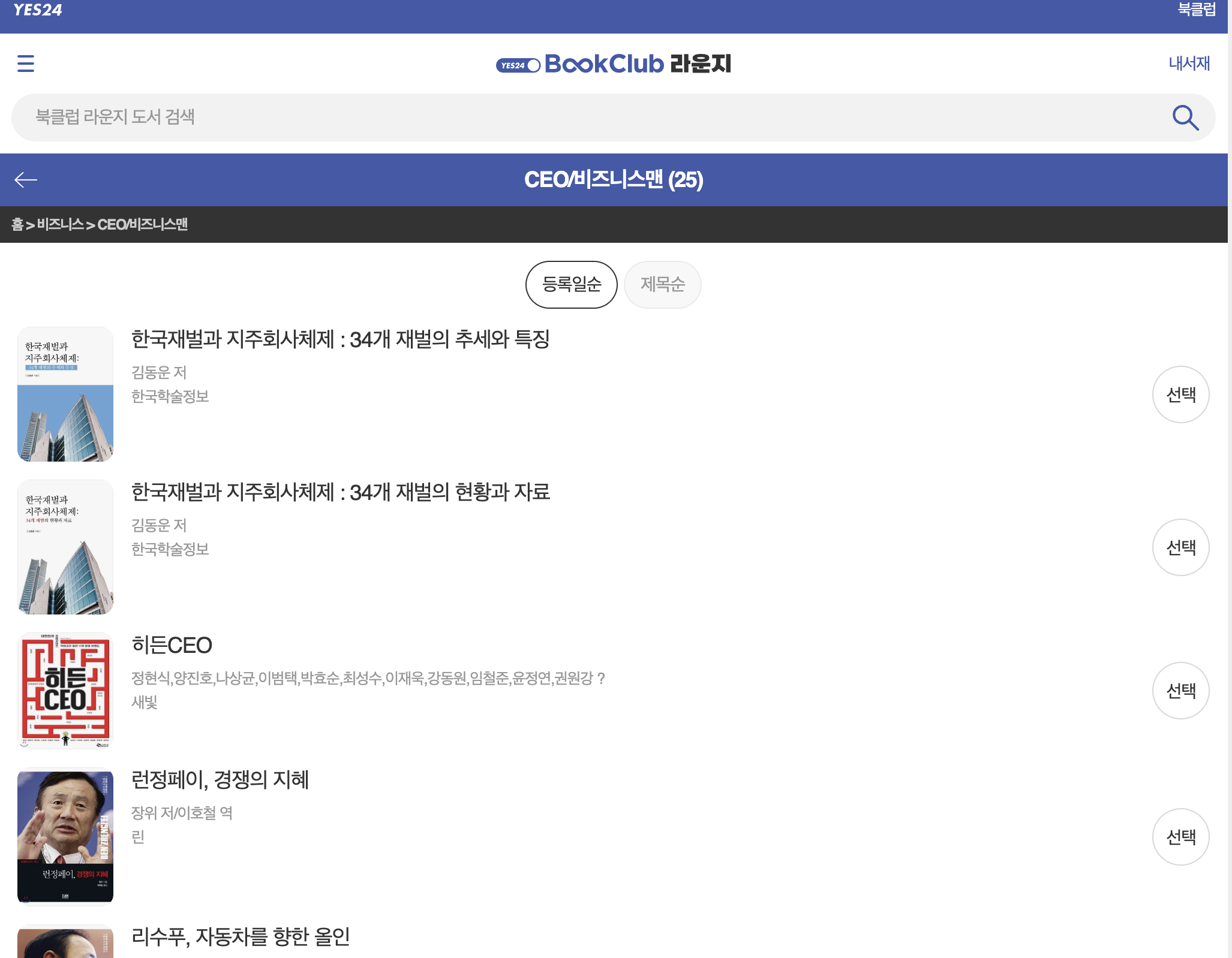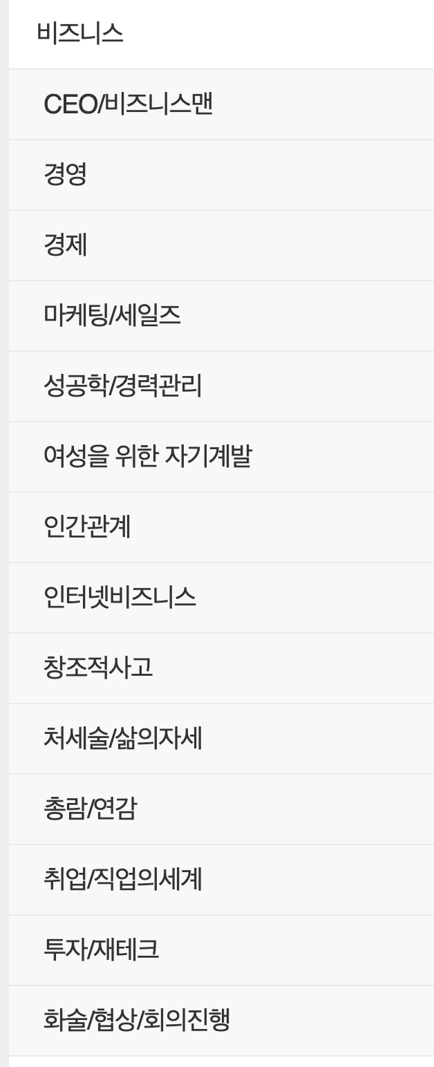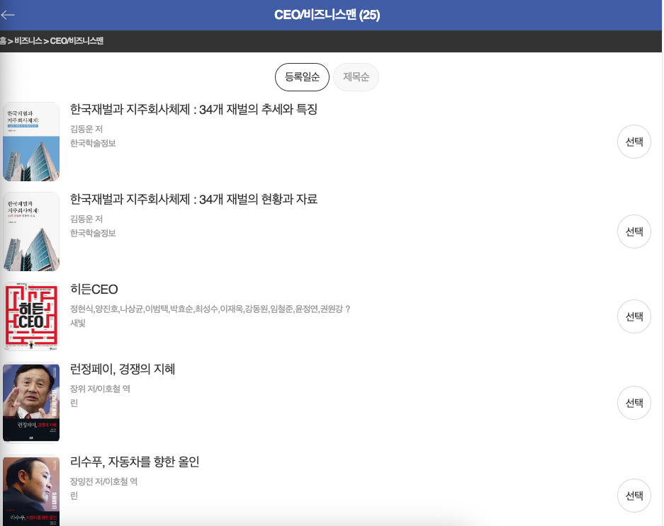 비즈니스 > CEO/비즈니스맨 하위 메뉴를 클릭하니까 총 25개 책이 보였습니다