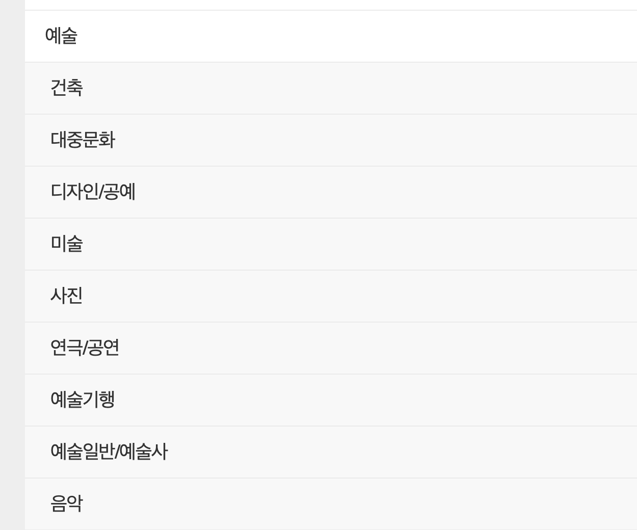 예술 분야 하위 메뉴