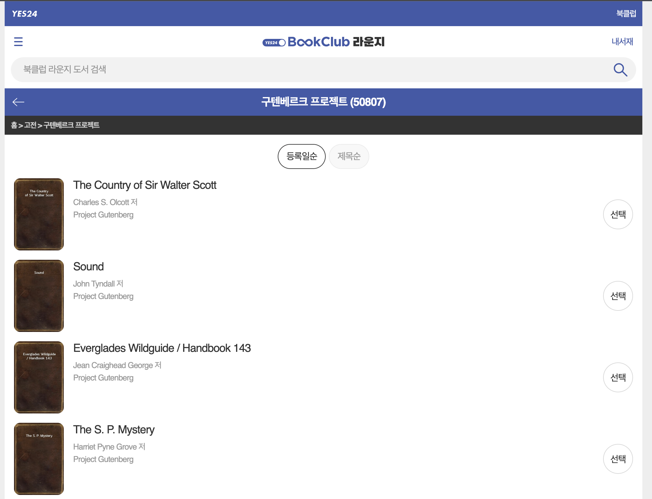 구텐베르그 프로젝트의 책은 예스24에서 서비스를 이용하지 않아도