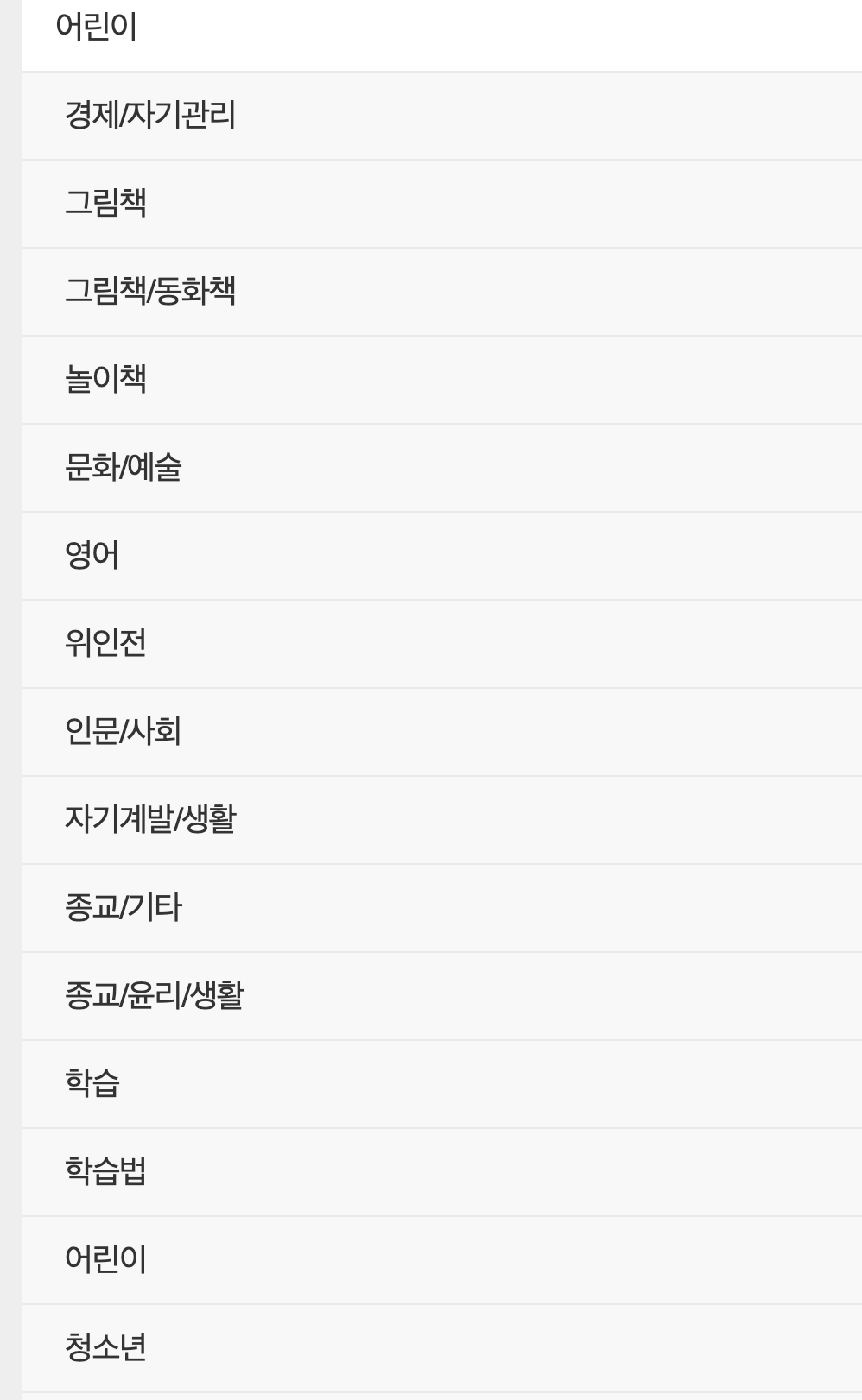 어린이 분야 하위 메뉴