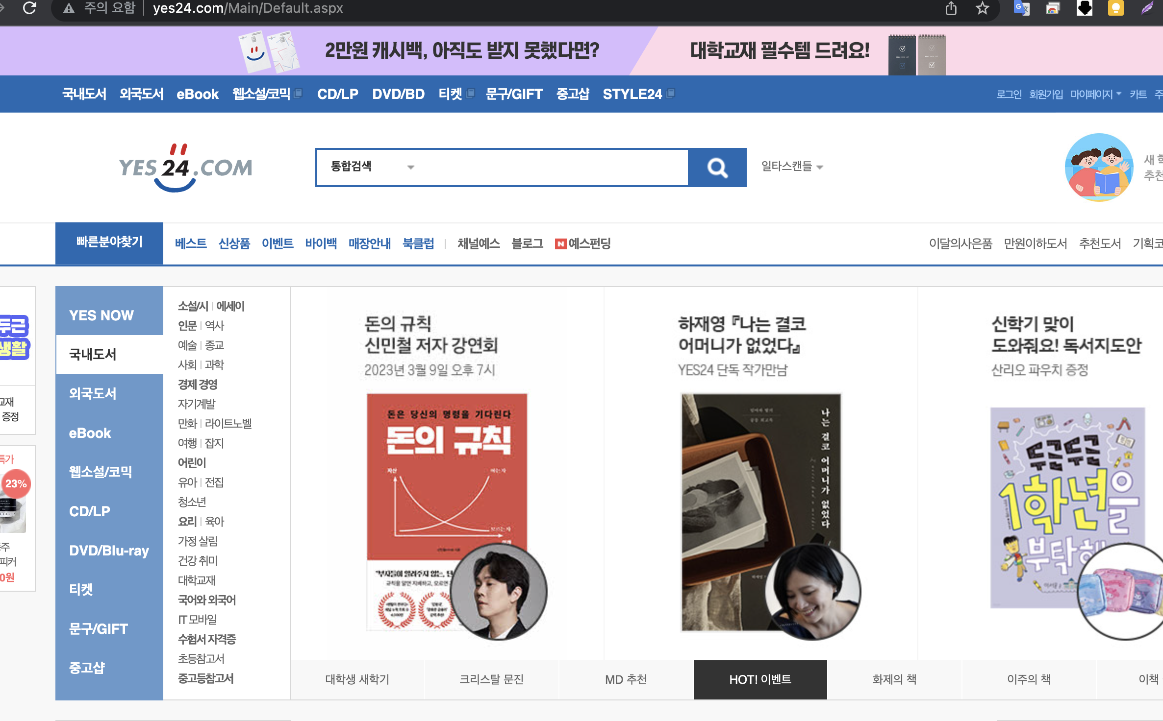 먼저 YES24(예스24)의 공식홈페이지로 갑니다