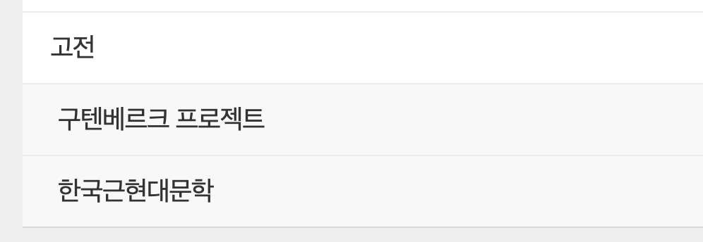 개인적으로 고전분야의 하위 메뉴를 보고는 좀 놀랐습니다.